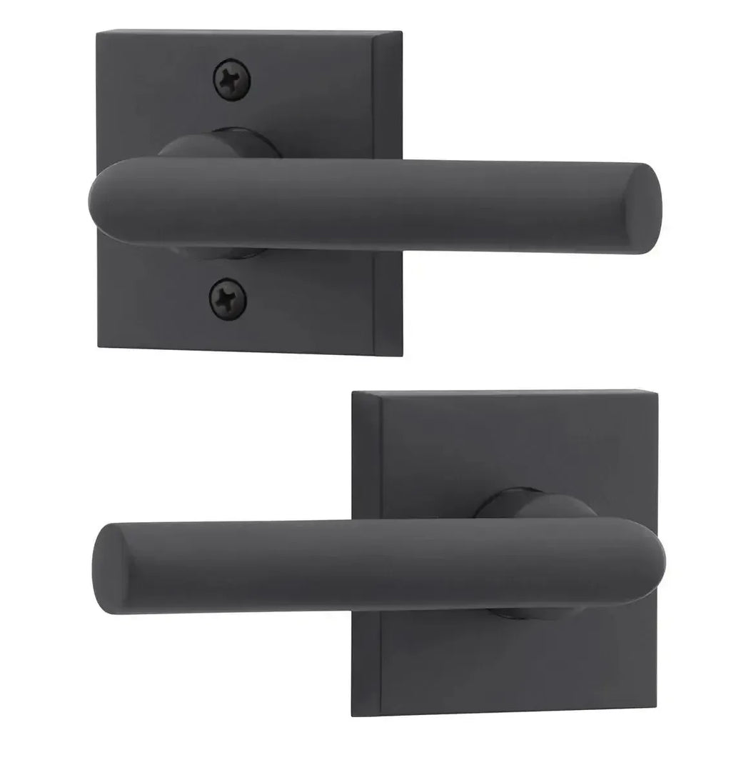 - Lever set paired with roses without a privacy lock to both close and secure any door with the 2 1/8" standard door preparation.