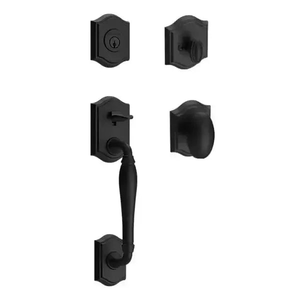 The Baldwin Reserve Westcliff Handleset with Interior Ellipse Knob and Traditional Arch Rosette exudes refined elegance with its graceful, arched rosette and sleek, oval-shaped Ellipse knob. The design effortlessly blends timeless appeal with modern sophistication, providing both style and security. Crafted from premium materials, this handleset ensures durability and long-lasting performance. Available in a variety of finishes to complement any home’s aesthetic.